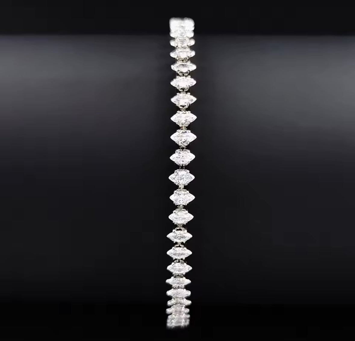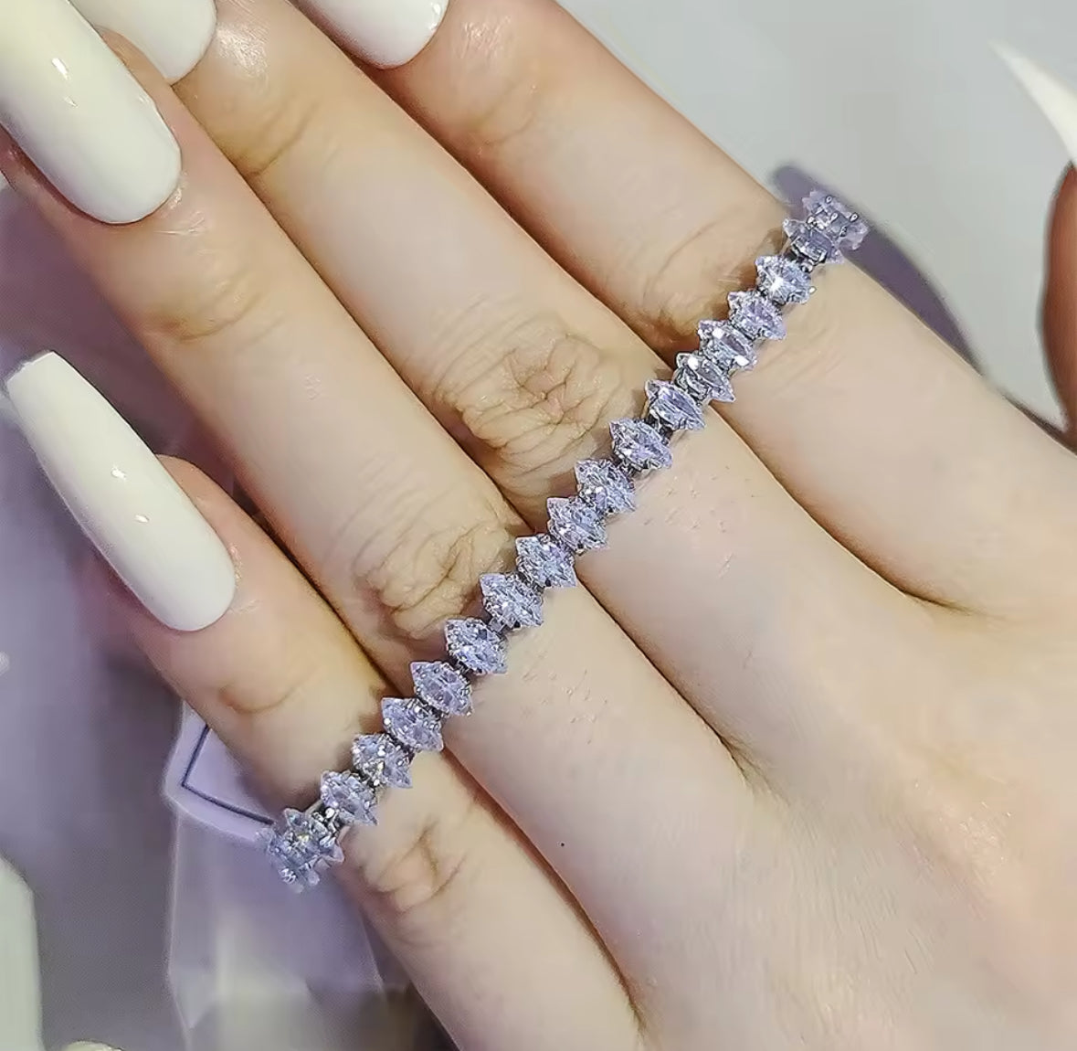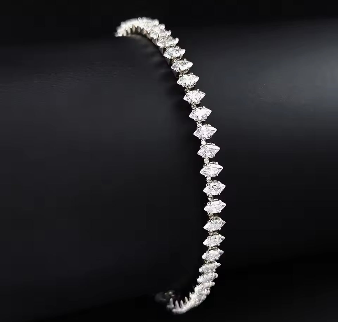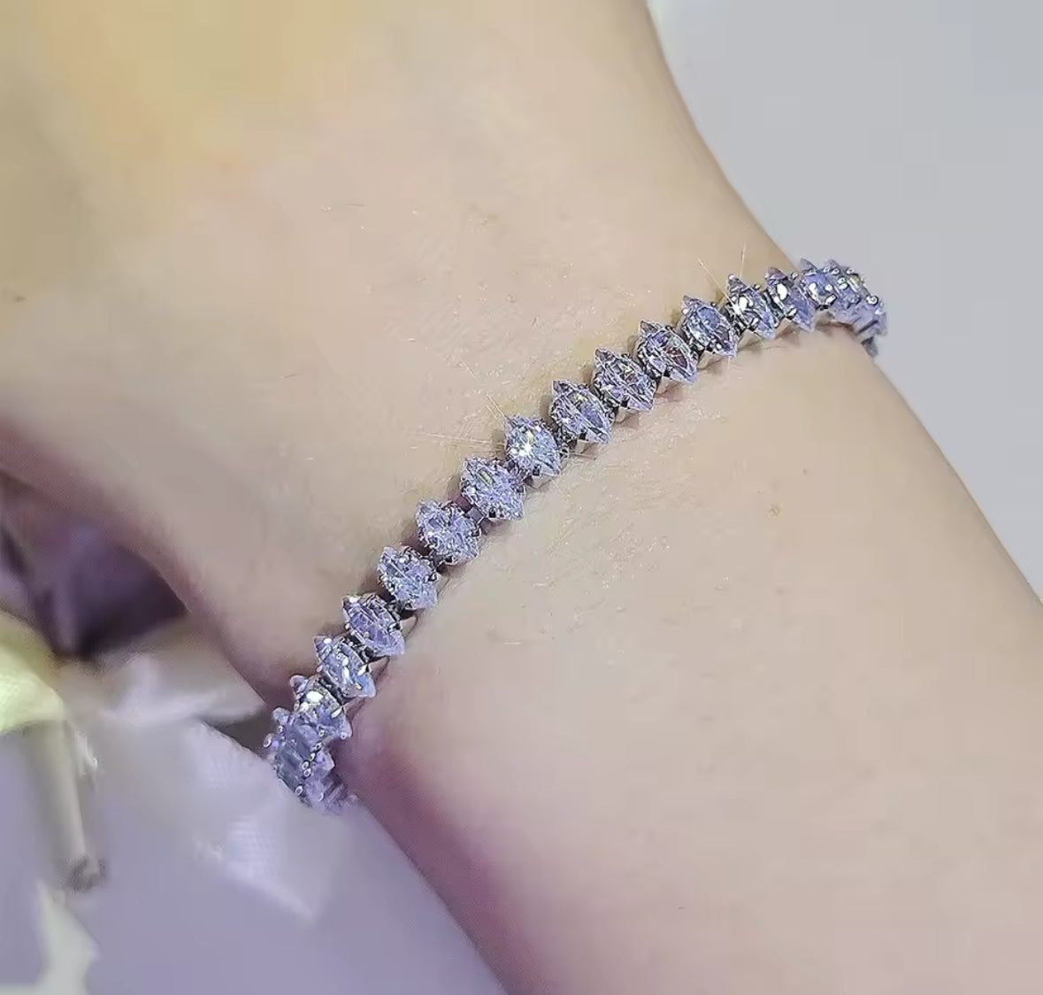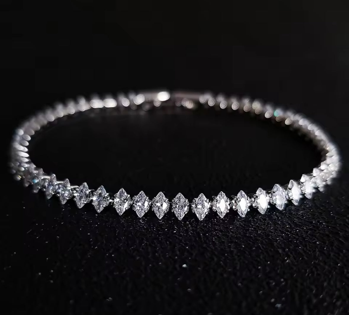 Explore our latest luxury tennis bracelet, "Eva" with a stunning silver color and an elegant oval square cut. Shop now and add a touch of sophistication to your collection.