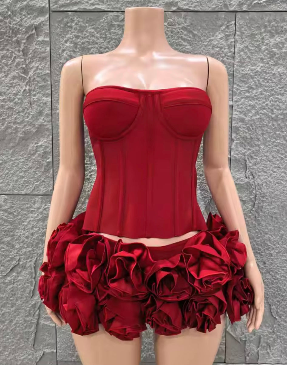 Make a bold statement in Brooklyn, a two piece setdesigned to turn heads. Featuring a push-up corset, and a red sexy mini skirt design with an elastic stretch for a perfect fit, this set hugs your curves in all the right places.