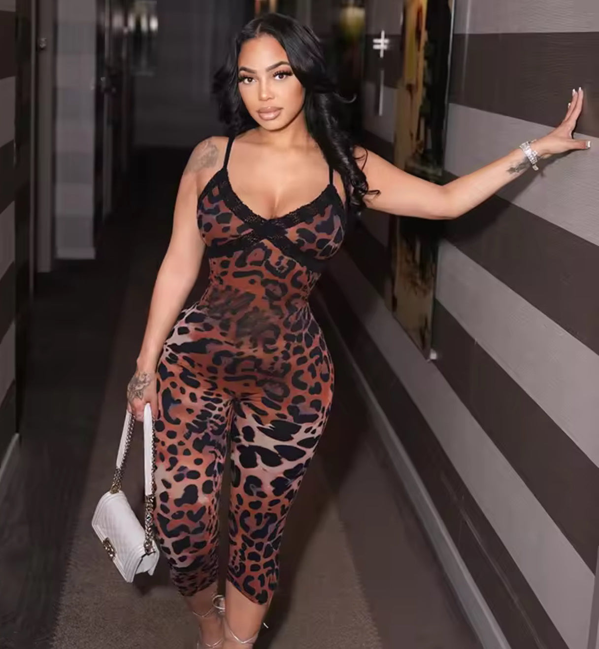 Get ready for a wild night out with your girls in one-piece “Carmen”. This is our brand new, fierce Leopard Print Lace Trim Patchwork Bodycon Jumpsuit for women. Perfect for club-hopping or a girls' night extravaganza!