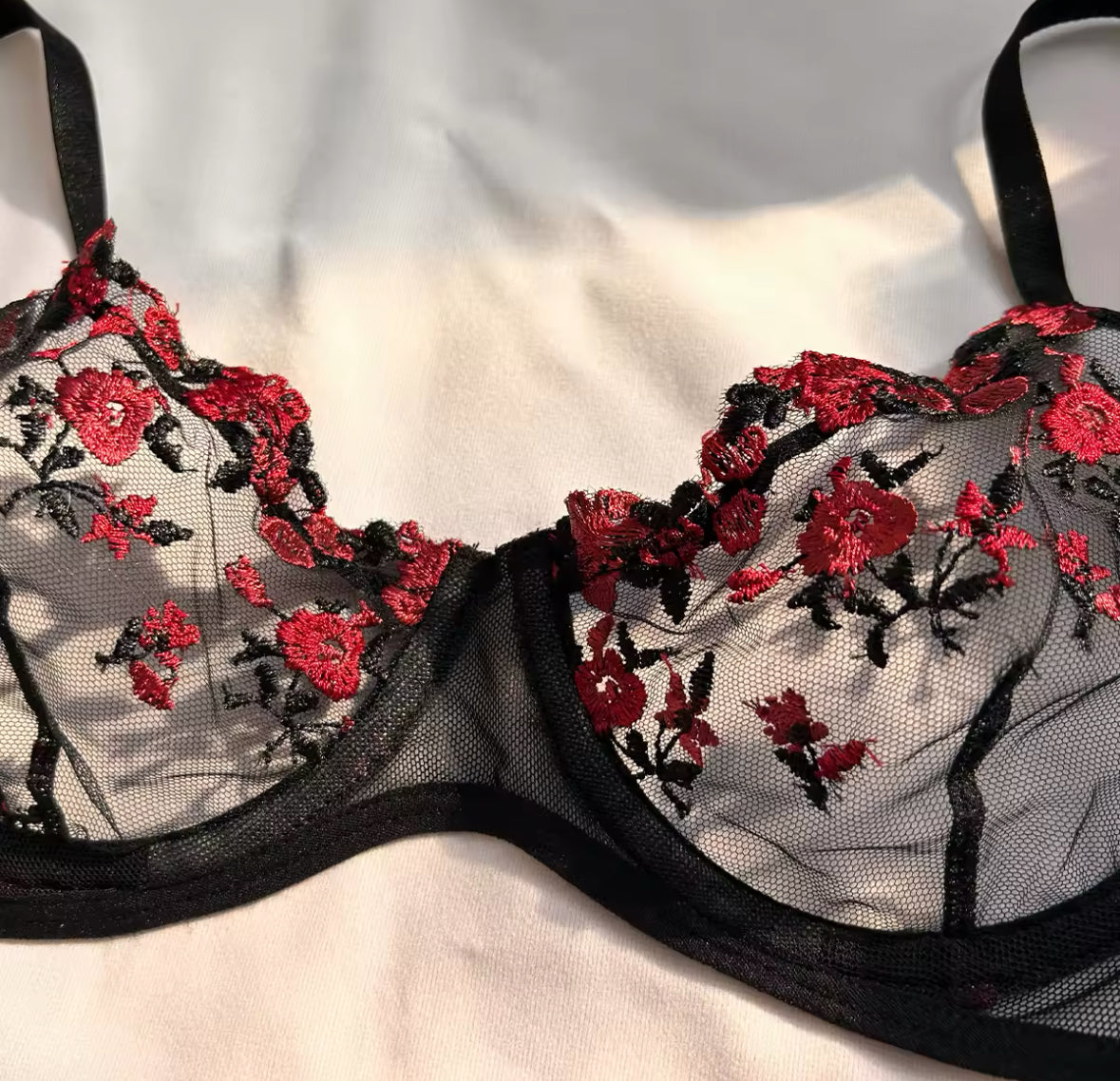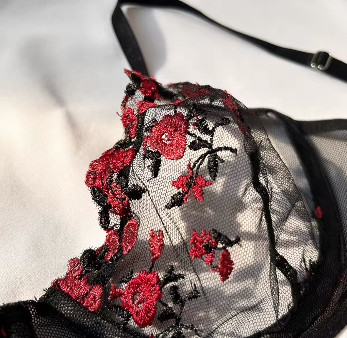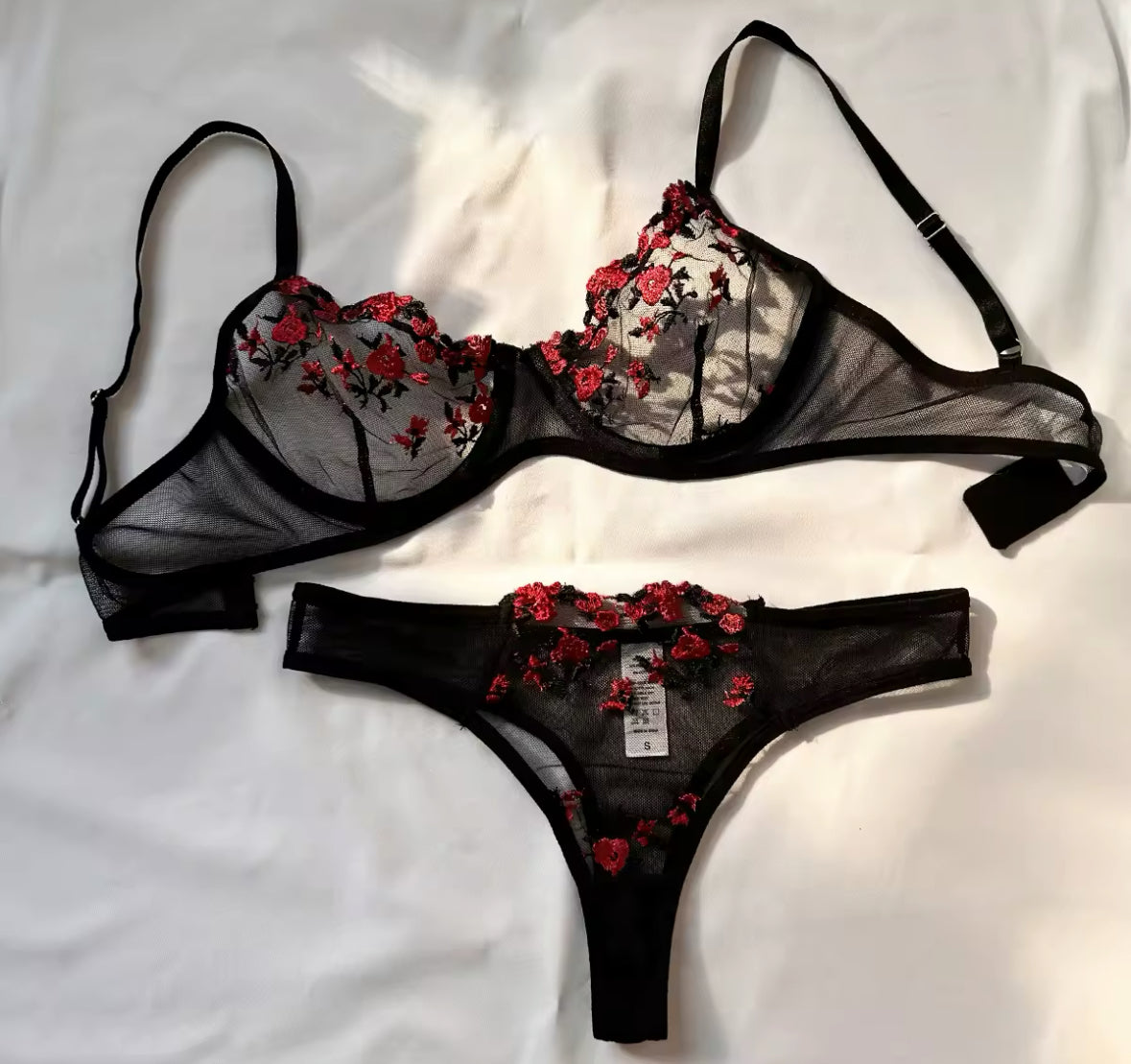 Embrace your figure with our Women's two-piece sheer lingerie set featuring delicate floral embroidery. Multiple colors available