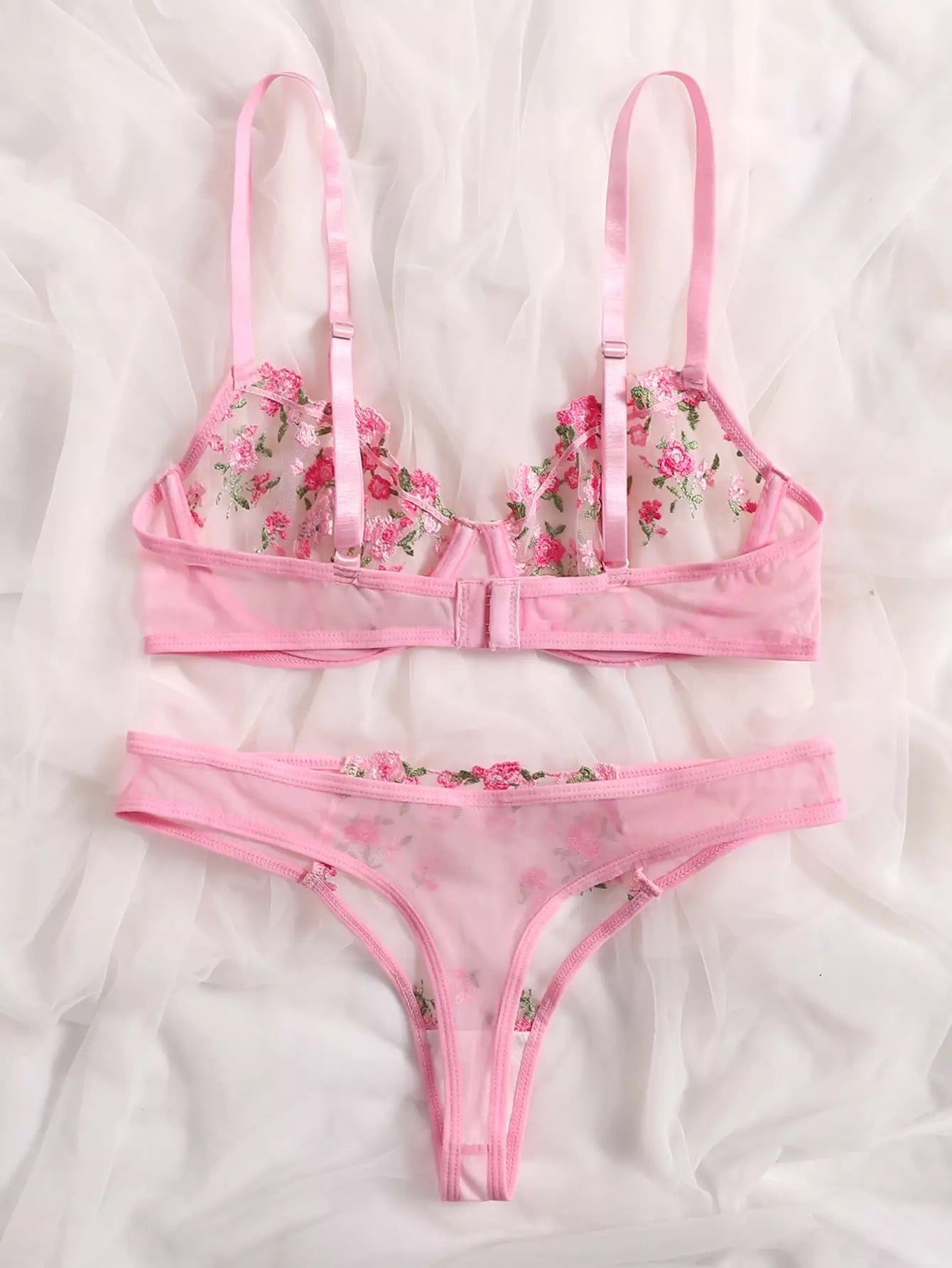 Two Piece Blush Pink Ultra-Thin Sexy Lingerie Floral Embroidery