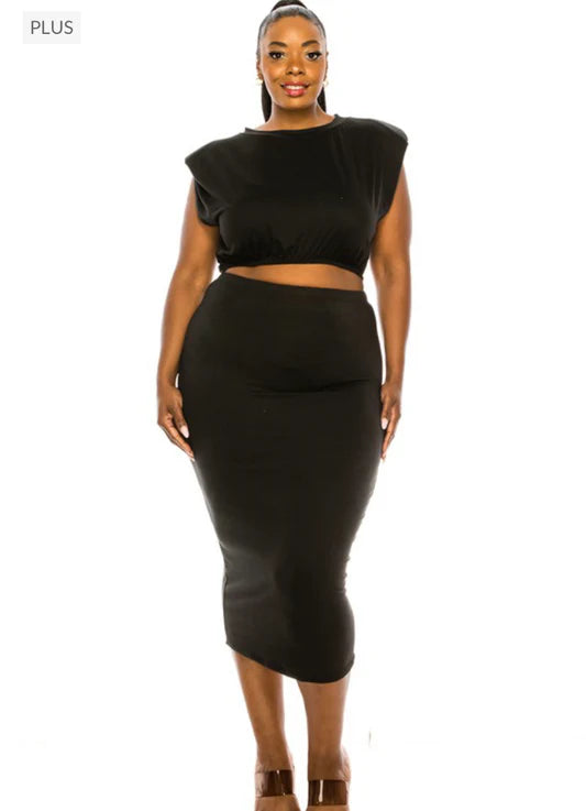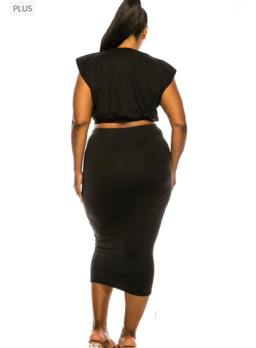 Super cute black two piece set. Maxi skirt and cropped top shirt