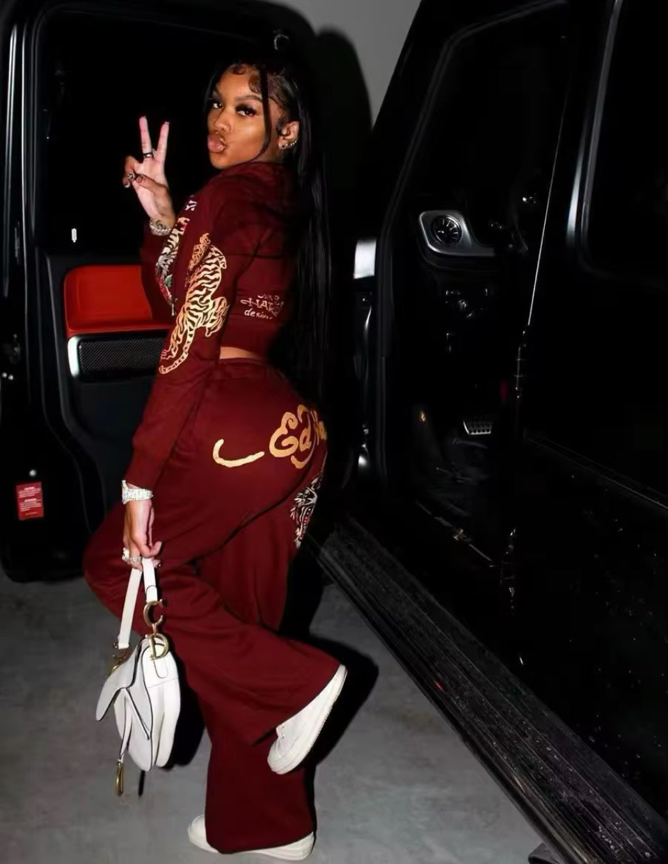 Trending Ed Hardy Lover Skull Sweat Suit. Crop Top Jacket and Straight Leg Pants.