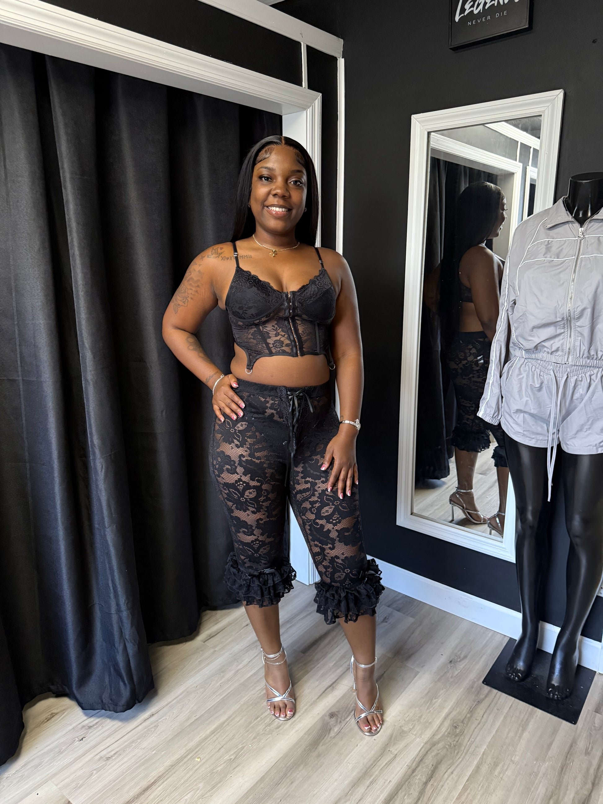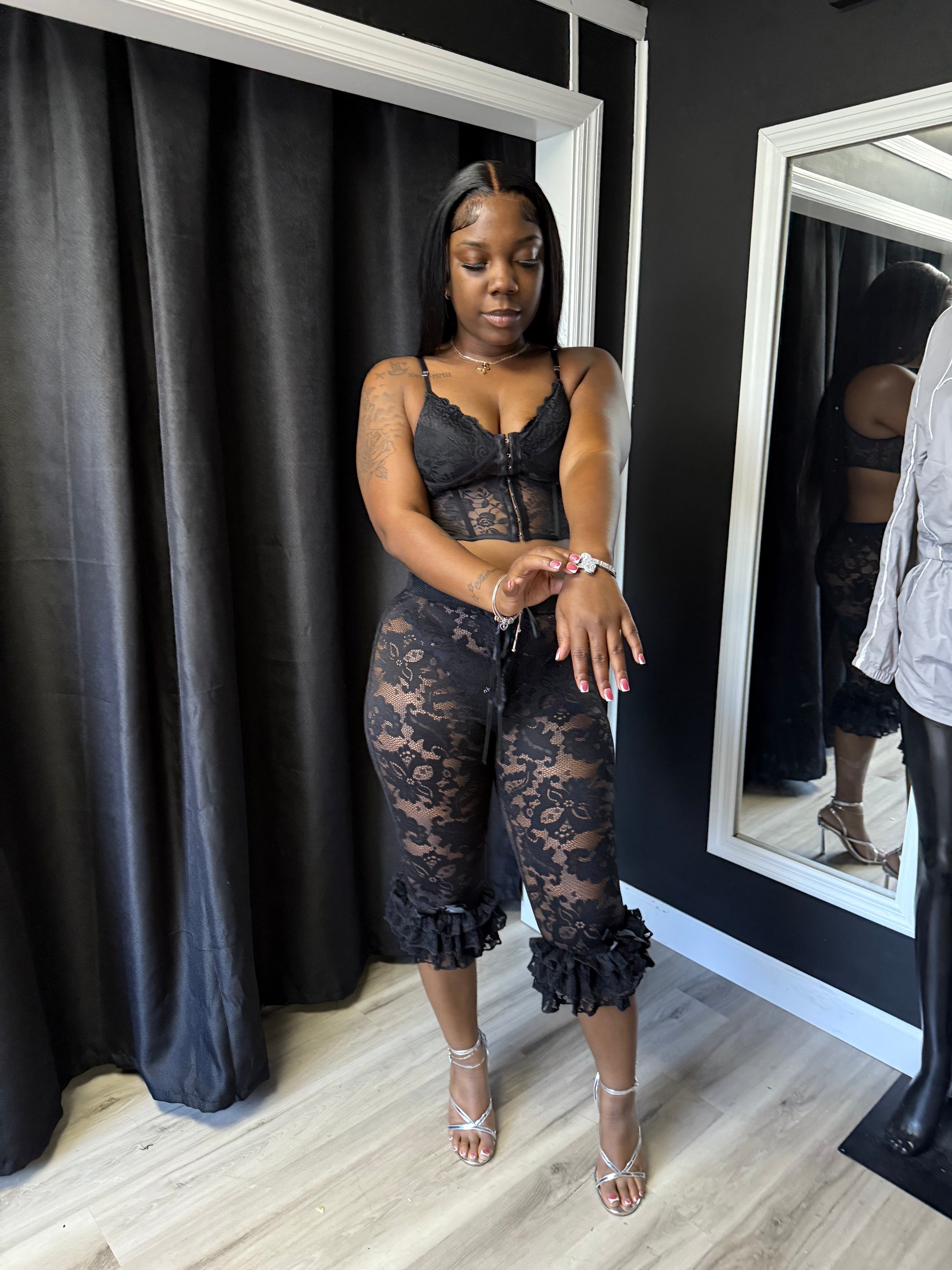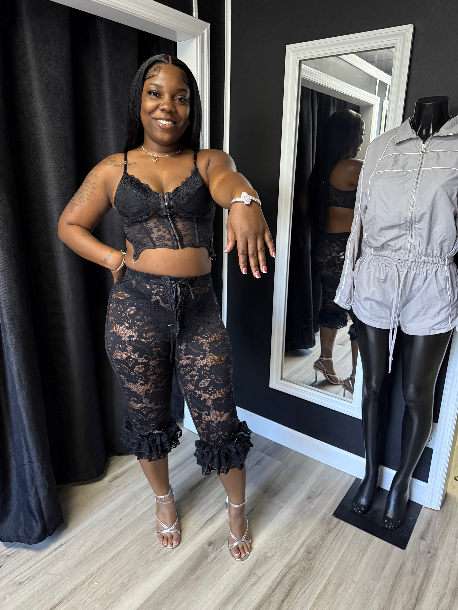 High quality matching sets! One for you and one for your bestie! Lace corset top and lace leggings.