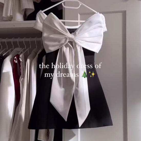 Discover our Mariah dress, featuring an elegant design with a big bow detail and an off-shoulder, sleeveless style. Perfect for any occasion, this black dress will elevate your fashion game with its backless silhouette.