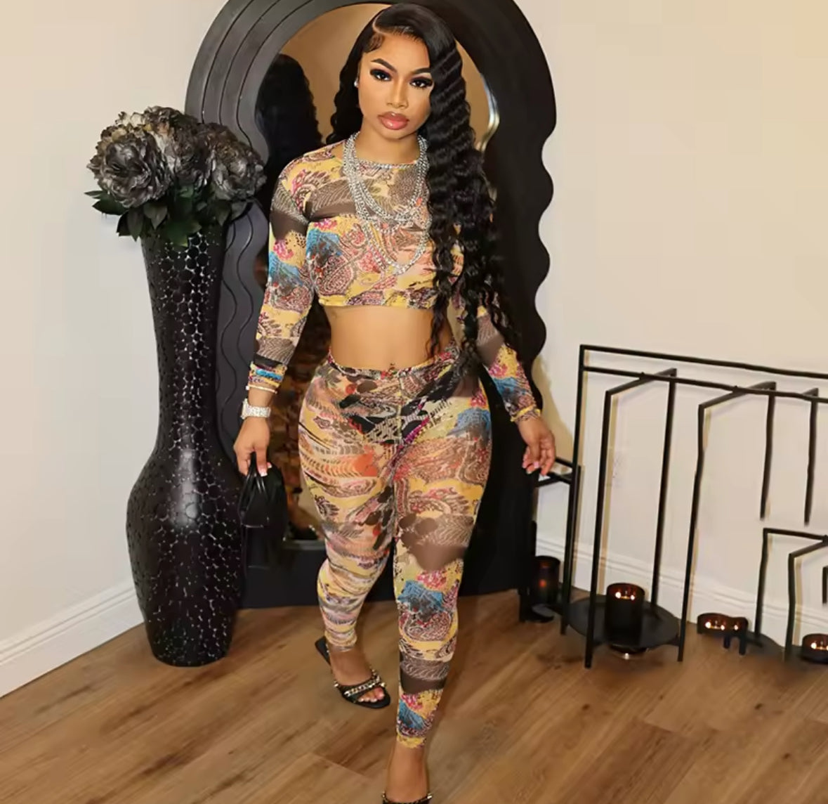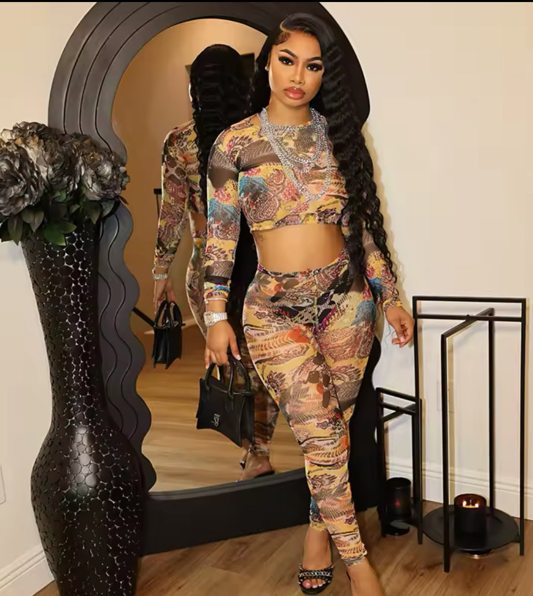 Experience the sleek and modern design of our Taylor two-piece set, featuring a playful and eye-catching multicolored retro mesh pattern. Elevate your style with this must-have addition to your wardrobe.