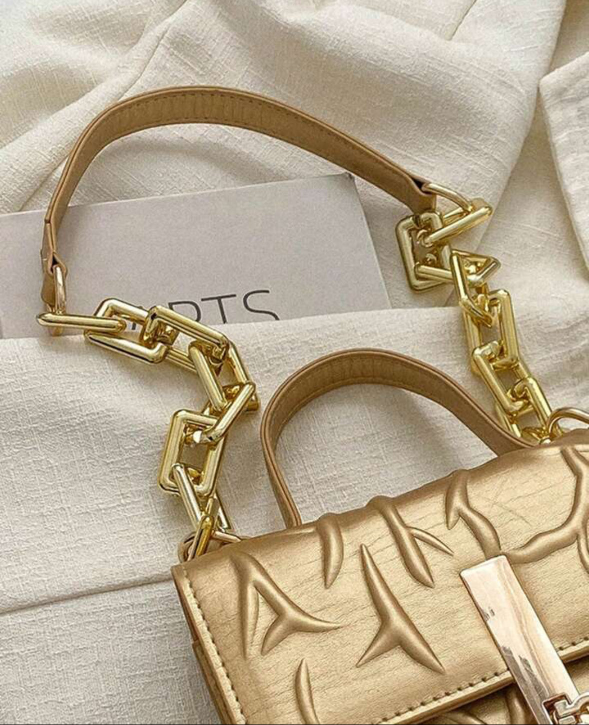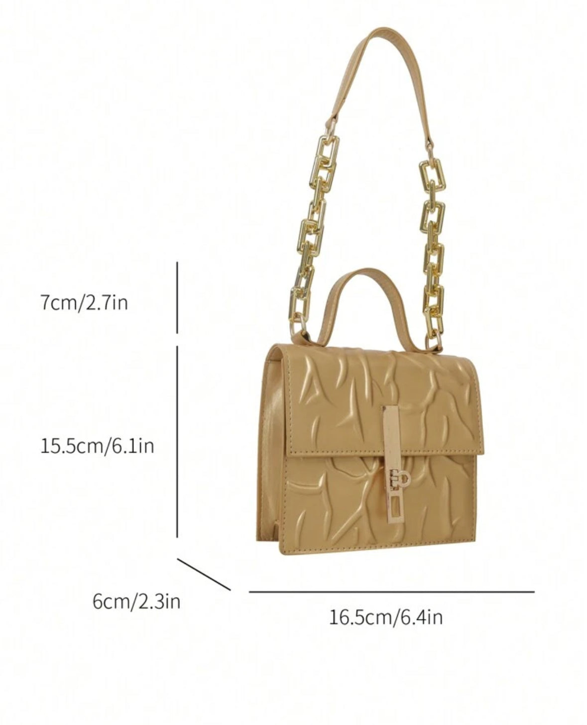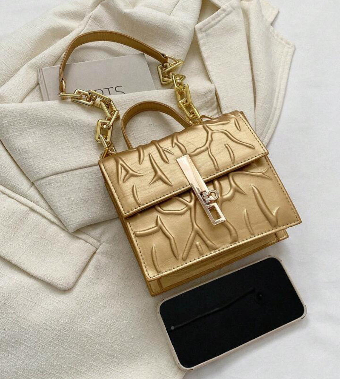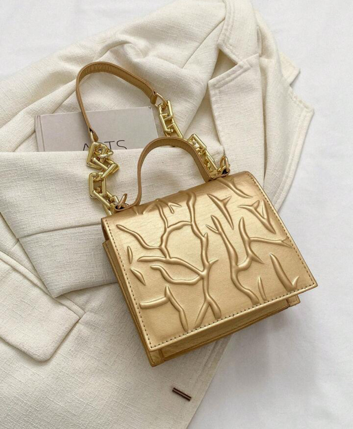 Gold Elegant Solid-Color Crocodile Pattern Flap Top Handle Handbag